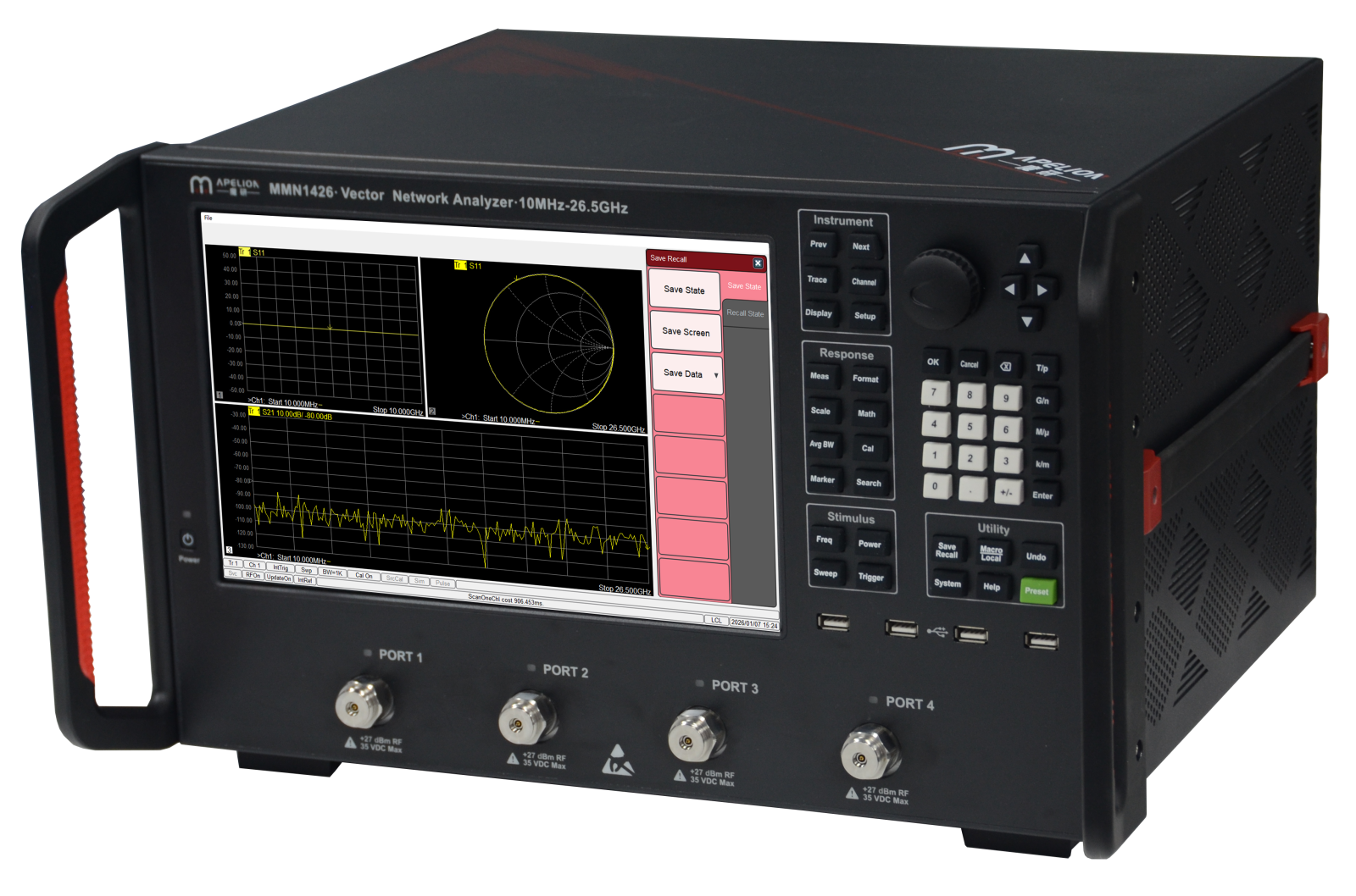 MMN1000 系列矢量网络分析仪是魔研匠造中端核心产品,频率覆盖 10MHz-26.5GHz,提供 2/4 端口配置选择,动态范围高达 128dB@1GHz,中频带宽 1Hz-1.5MHz,测量精度出众。支持 S 参数、接收机测量等多元功能,兼容主流校准件与 SCPI 语言,配备 12.1 英寸高清电容屏及丰富通信接口,操作便捷高效。依托高校研发团队与专业技术积淀,专注射频测试仪器创新,具备优异的信号纯度与稳定性,适配无线通讯、汽车电子、航空航天等多领域研发生产需求,是性能可靠、适配性广的国产高端矢量网络分析仪优选。