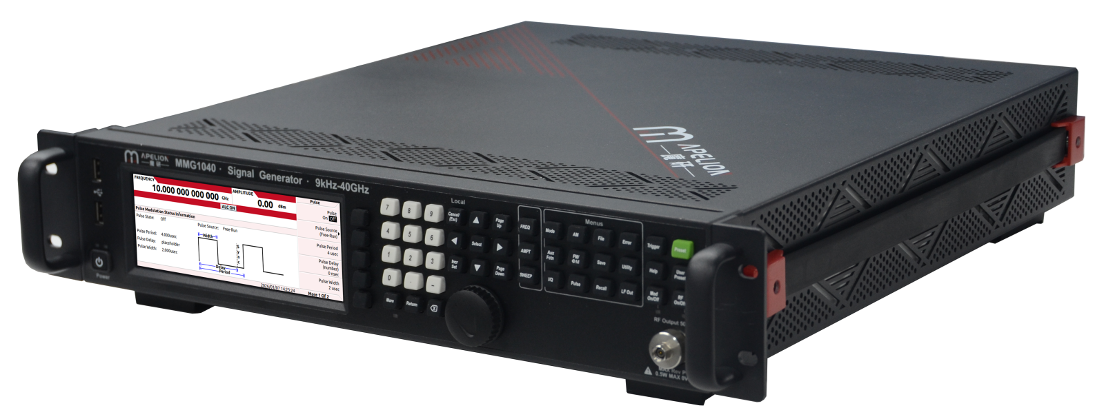 MMG1000 系列模拟信号源是魔研匠造中端旗舰产品,频率覆盖 9kHz-40GHz,幅度范围 - 135dBm 至 + 23dBm,相位噪声低至 - 136dBc/Hz@1GHz、10kHz 频偏,频谱纯度优异,满足高要求测试场景。产品支持 AM/FM/PM 模拟调制与 20ns 窄脉冲调制,响应迅速且精度出众。标配 USB-HOST、USB-DEVICE 及 LAN 接口,兼容主流 SCPI 语言,操作便捷。依托高校研发团队与专业技术人才积淀,专注射频与数字测试仪器创新,适配无线通讯、汽车电子、航空航天等多领域研发生产需求,是性能可靠、适配性广的国产高端模拟信号源优选