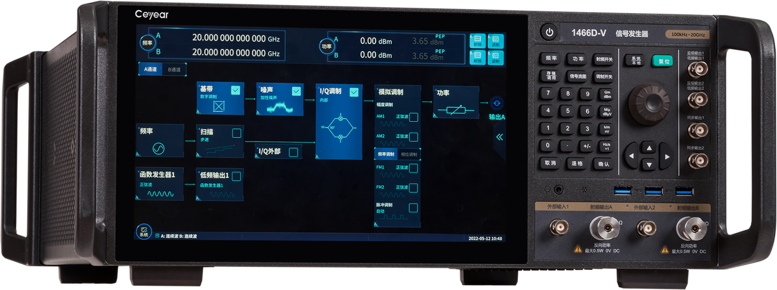 Ceyear 1466系列信号发生器是一款面向微波毫米波尖端测试的通用测试仪器,频率范围覆盖宽、射频调制带宽大、信号频谱纯度高,具有高准确度和大动态范围的功率输出,以及出色的矢量调制精度和ACPR性能,搭配单机双射频通道和多机级联的设计,可满足您各类测试要求。